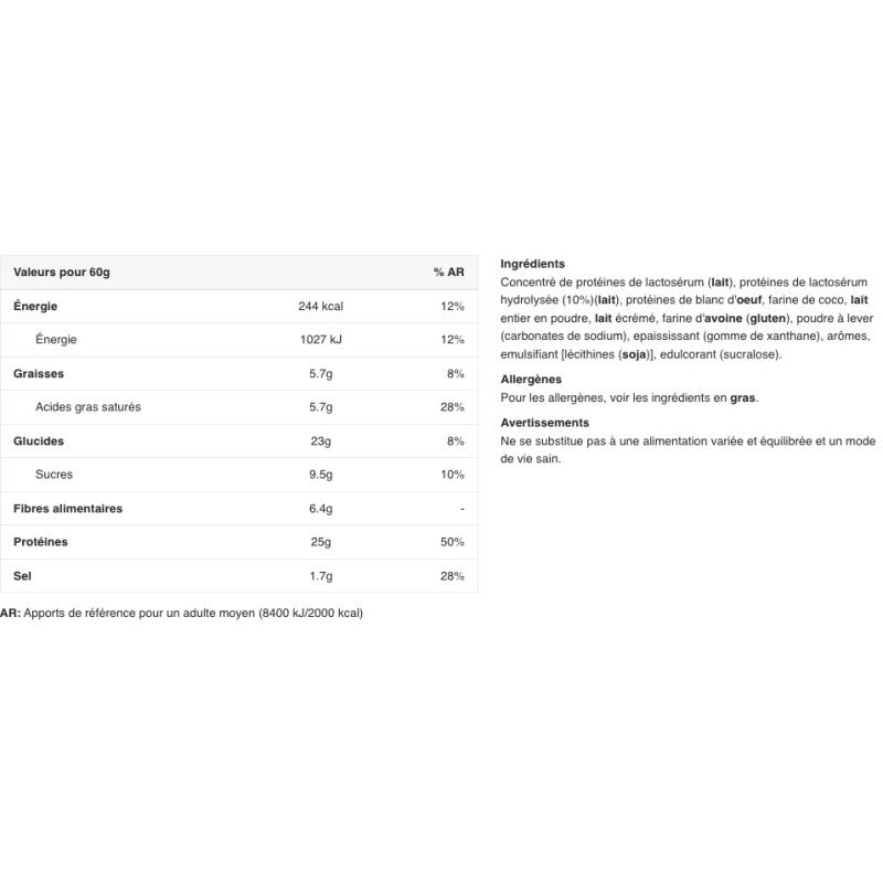Ajoutez juste de l’eau, mélangez et faites cuire! HI PRO PANCAKES unissant parfaitement le goût traditionnel et la composition moderne constituent – excellent complément du régime équilibré et du mode de vie sain. Une alimentation variée et équilibrée et un mode de vie sain sont recommandés.